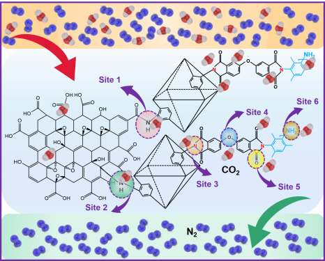为了应对CO2排放引起的全球变暖、海平面上升等严重气候问题,二氧化碳的转化、捕获和分离受到广泛关注。利用有效的吸附剂对CO2进行捕集富集,可有效降低大气中CO2的浓度,同时是一种经济节能的有效方法。氧化石墨烯(GO)广泛应用于改善金属有机骨架(MOF)的孔结构、分散能力、吸附选择性、耐酸碱性和热稳定性。然而,仅仅通过GO与MOFs的结合来改变孔表面的极性为CO2分子提供合适的孔结构来提高选择性仍然是一个艰巨的挑战。