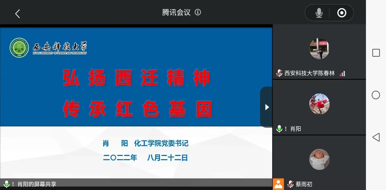 为丰富充实广大参训员工的军训生活,使同学们度过一个有意义、有知识、有温度难忘的军训,深入学习贯彻习近平总书记在省部级领导干部专题研讨班上的重要讲话精神和习近平总书记来陕考察重要讲话精神,使同学们更深刻认识“西迁精神”的重大意义,了解西迁精神的实质内涵和价值追求,让广大青年充分从“西迁精神”中汲取知识力量,提高思想认识,PA视讯于8月22日下午利用腾讯会议在线上开展军训特殊党课,化工“导”论系列讲座。