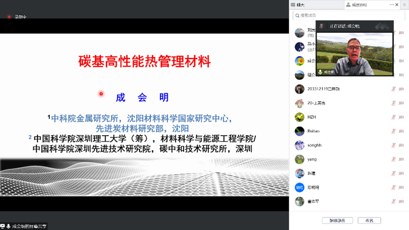 中国科公司成会明院士、中国工程院李贺军院士、清华大学深圳研究生院康飞宇教授、北京化工大学邱介山教授、天津大学杨全红教授、中国科公司金属研究所李峰教授、中国石油大学(华东)智林杰教授、清华大学张强教授、宁波大学阮殿波教授、中山大学吴丁财教授、大连理工大学于畅教授、中国石油大学(华东)吴明铂教授、太原理工大学王晓敏教授、中国石油大学(华东)范壮军教授、中国科公司陕西煤化所陈成猛教授、中国科公司大连化学物理研究所吴忠帅教授、清华大学深圳国际研究生院吕伟教授;台湾国立清华大学戴念华教授、台南大学林建宏教授、中原大学刘伟仁教授、明志科技大学刘定宇教授、中央大学苏清源教授等来自全国海峡两岸的50余所高校、学会及科研机构的专家学者受邀参加会议。