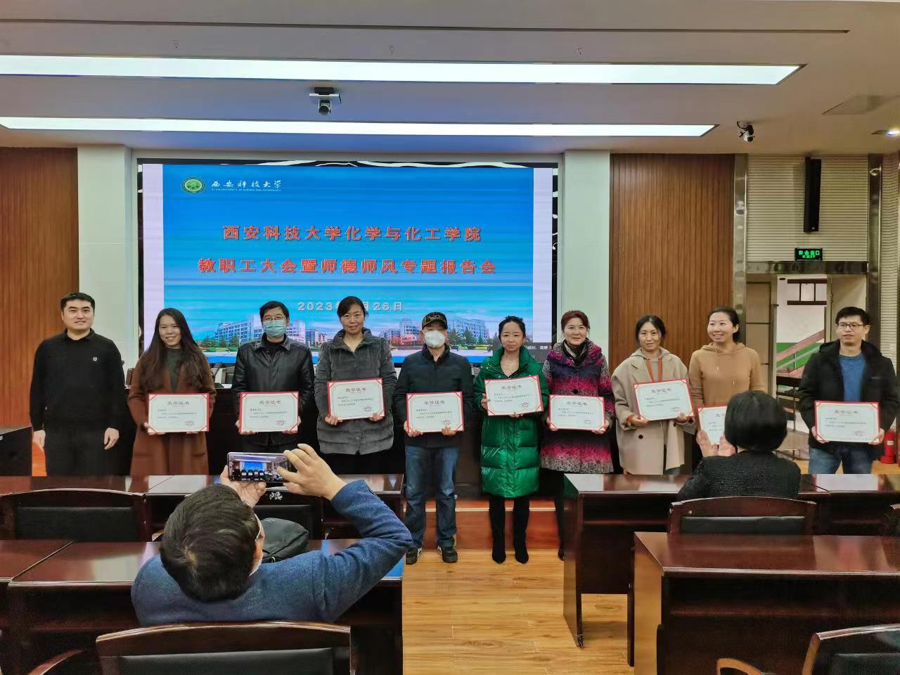 会上,公司党委副书记田园宣读《关于表彰2022年度先进个人的决定》,公司领导依次为获奖教职工颁奖,并合影留念。公司各分管领导分别从本科教学工作、研究生教育、科研项目、团队建设、员工管理、学风建设、员工工作等方面对新学期重点工作进行了汇报展望。经理张亚婷传达了公司教代会精神并安排部署2023年度重点工作。肖阳传达了公司党委会和领导班子民主生活会会议精神,安排部署了平安校园建设相关工作。