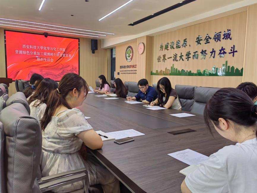 2023年9月8日,PA视讯资源绿色分质加工师生联合党支部在雁塔校区4号楼会议室召开主题教育专题,支部全体党员参加此次会议,会议由支部宣传委员武奥环主持。
