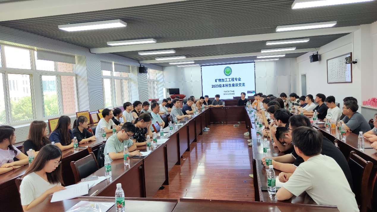 首先,系主任屈进州从古代矿物加工技术、现代矿物加工先驱与杰出代表、公司矿物加工工程学科/专业历史与发展、专业团队队伍与教学资源、员工课外科技活动、升学就业、优秀员工代表风采等方面对矿物加工工程专业进行了全面介绍,并从培养目标、毕业要求、课程安排、教学要求等方面对人才培养方案进行了解读。在座同学畅所欲言,既有对未来考研/就业选择的设想,也有对老员工活的迷茫,既有对专业知识学习的期待,也存在专业认知上的困惑。随后,参会教师们针对同学们反映的问题,从学习规划、专业发展、科技竞赛、老员工活、就业考研困惑等方面进行了解答和记录。副经理李振从矿物加工专业内涵、专业定位与研究内容、升学深造及就业面向、专业建设发展前景、煤炭资源开发及综合利用等方面作了介绍,并鼓励同学们提高专业信心,坚定理想信念,着眼时代大局,关注行业前沿,适应时代发展。
