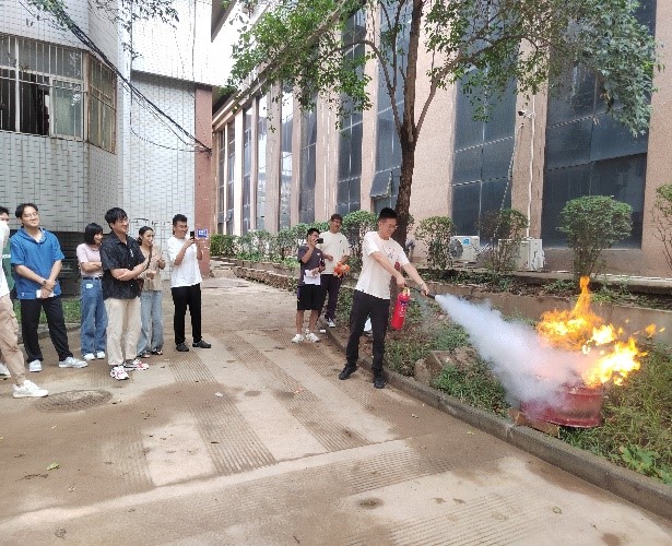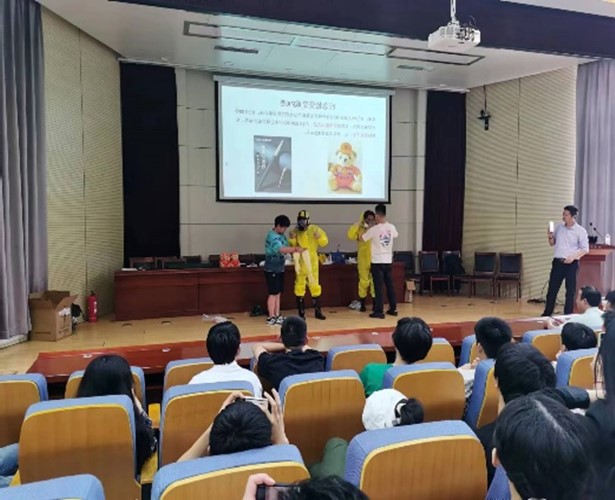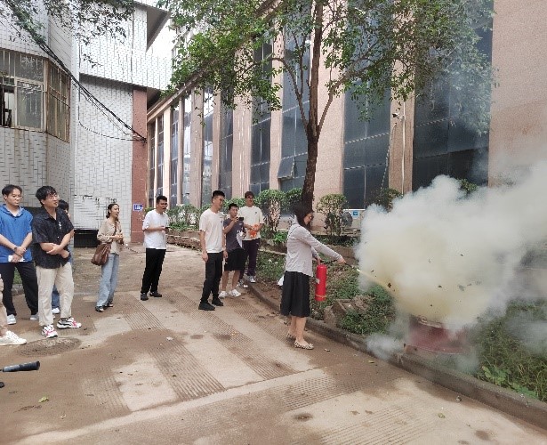最后,在模拟消防警报声中,全体师生紧急撤离,在室外组织开展了消防安全演练,将此次活动推向高潮。消防演练中,对比了不同类型灭火器在常见实验室化学品着火时灭火的差异,通过实操演练,加深了师生对消防知识的理解,提高了火灾应急反应速度,让参与者亲身体验了火灾应急响应的全过程。