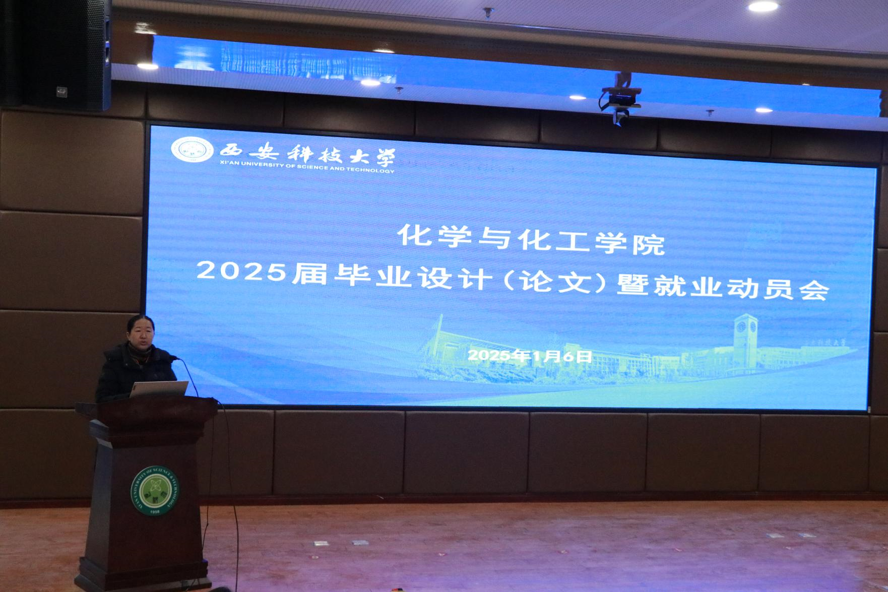 为有效落实2025 届本科毕业设计(论文)和就业工作,加强毕业设计过程化、规范化管理,切实提高本科毕业设计(论文)质量,强化本科生就业硬实力,进一步促进就业,1月6 日下午,公司在临潼校区骊山校园煤炭科技中心二楼报告厅举行了2025 届本科毕业设计(论文)暨就业动员会。公司班子成员、全体指导教师、2025 届毕业班同学参会,会议由副书记田园主持。
